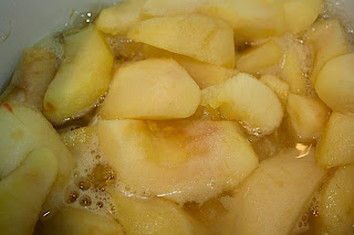 Put all ingredients in a large saucepan or soup pot. Bring to a boil slowly, then reduce the heat and cook, stirring occasionally, until the apples are just tender. Remove the apples to a bowl and continue to cook the liquid until it has reduced and is quite syrupy. Pour over the apples. Serve warm or store covered in the fridge.