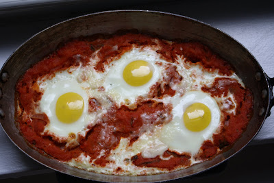 MENU: “Eggs in Pipérade” Pizzas with Crispy Prosciutto; Deli Coffee (Mark)
